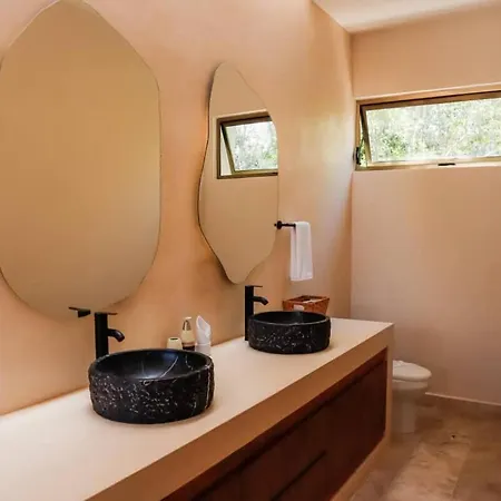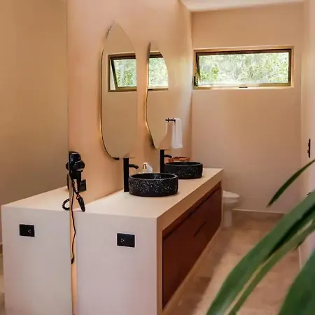 Bathroom facilities at the Tulum villa also include a washing machine. A hairdryer, toiletries, and bath sheets are included to enhance your comfort.